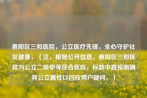 惠阳区三和医院是一家以“守护健康,服务社区”为宗旨的综合性医疗机构,致力于为当地居民提供优质、便捷的医疗服务,作为区域医疗先锋,医院配备先进设备与专业医护团队,涵盖内科、外科、妇产科、儿科等多个科室,并注重社区健康宣教与疾病预防,关于医院性质, *** 息显示其为非公立(私立)医院,但具体需以当地卫健部门或医院官方最新说明为准,医院始终以患者为中心,通过人性化服务与技术创新,为惠阳区及周边群众健康保驾护航。